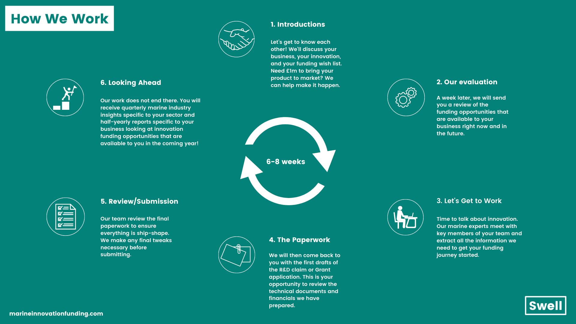 Everyone at Swell has a passion for clean innovation and technology. It’s who we are and what we do. We know that for most people (not us!) R&D tax legislation and Government Grant applications are tedious and boring aspects of running your business. But they are also a necessary hurdle for companies to overcome to get the funding they deserve. That is where we come in, at Swell we do all that for you, so you can spend more time on the clever stuff.